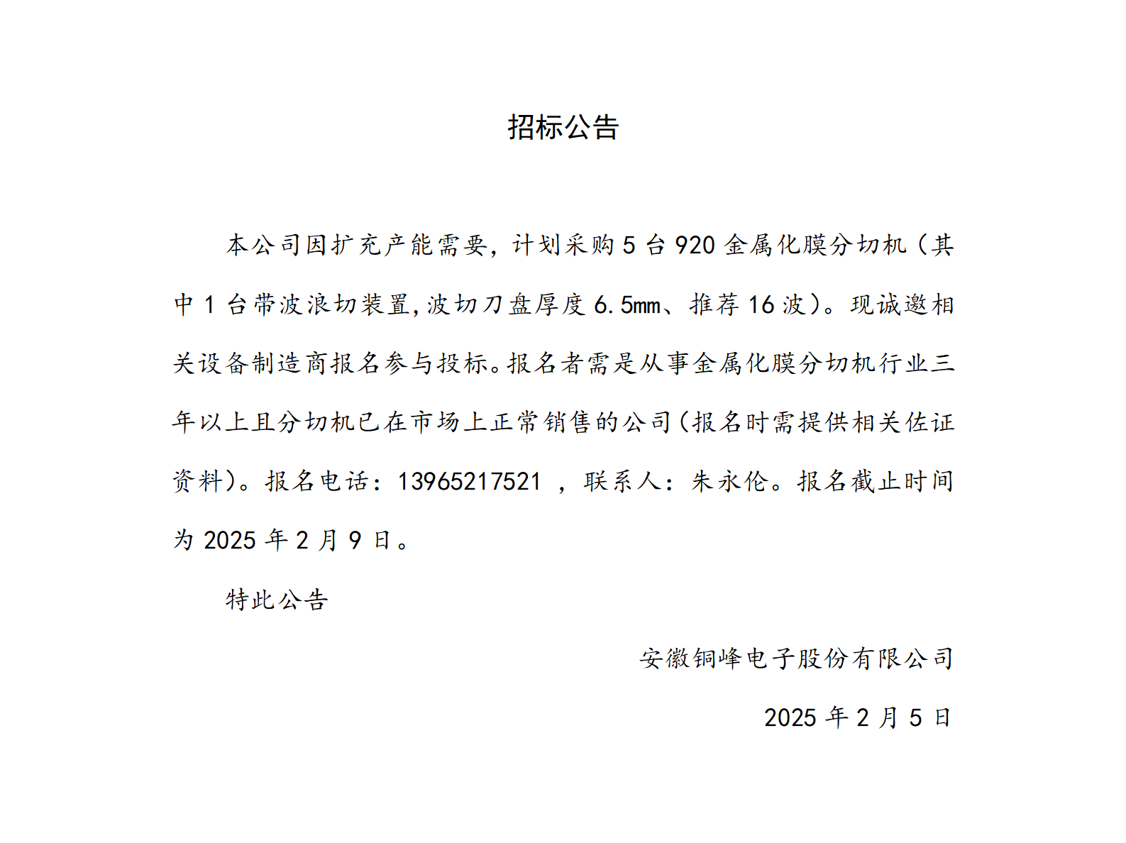 銅峰工業(yè)園新能源用電子元器件廠房項(xiàng)目消防工程補(bǔ)充公告