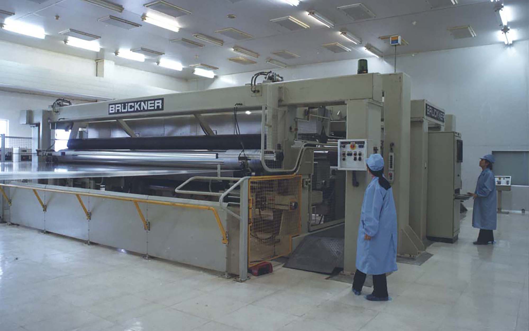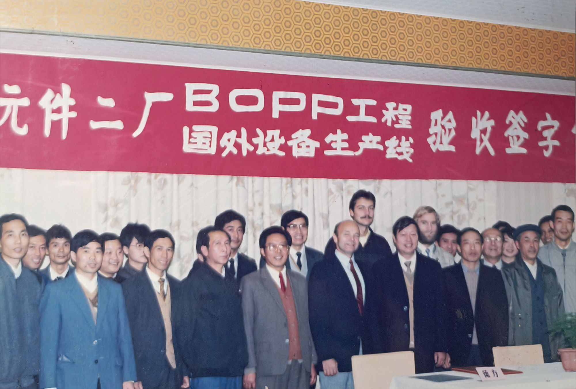 銅峰“老一線”于1989年建成投產(chǎn)。上世紀(jì)80年代,當(dāng)時(shí)國內(nèi)電容器用聚丙烯膜幾乎完全依賴進(jìn)口,嚴(yán)重制約了我國電容器等相關(guān)產(chǎn)業(yè)的發(fā)展。銅峰公司前身銅陵市無線電元件二廠積極響應(yīng)國家需求,決定從國外引進(jìn)雙向拉伸電容器用聚丙烯膜生產(chǎn)線。1985年項(xiàng)目啟動(dòng),經(jīng)過一系列籌備工作,1986年獲得國家計(jì)委批準(zhǔn)立項(xiàng),并被列入國家 “七五” 機(jī)械電子工業(yè)重點(diǎn)技改項(xiàng)目。1988年,主線和相關(guān)輔助設(shè)備成功引進(jìn)。經(jīng)過一年多的緊張建設(shè),1989年生產(chǎn)線正式投產(chǎn)。“老一線”的建成投產(chǎn),是銅峰發(fā)展史上具有重要意義的轉(zhuǎn)折點(diǎn)。該線加速了銅峰公司產(chǎn)品結(jié)構(gòu)調(diào)整和轉(zhuǎn)型步伐,并由此形成了全國唯一的“電工三膜”(電容薄膜、金屬化膜和薄膜電容器)一條龍的生產(chǎn)格局,使企業(yè)的經(jīng)濟(jì)規(guī)模和技術(shù)水平躍上一個(gè)新臺(tái)階。